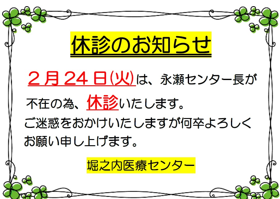 休診のお知らせ(2月24日)