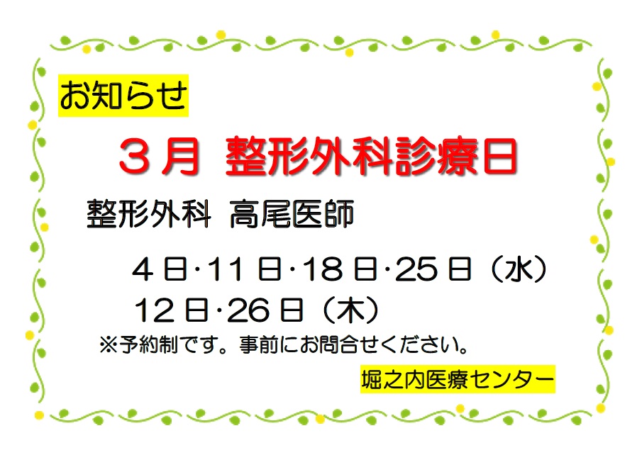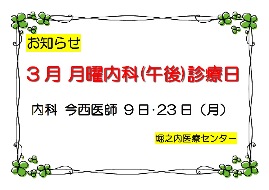 【堀之内医療センター】3月の診療体制について