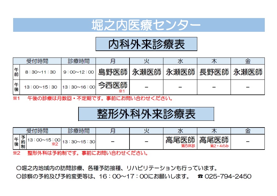 堀之内医療センターのお知らせ
