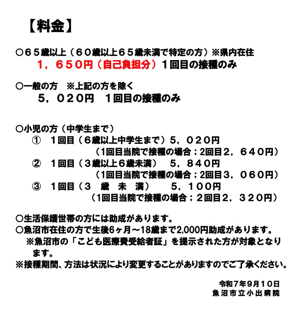 TOP お知らせ インフルエンザ予防接種を受けられる方へ