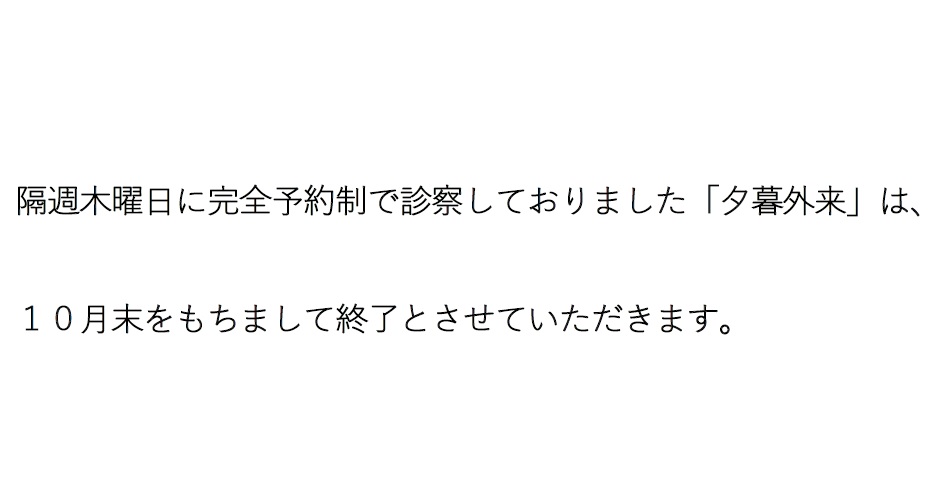「夕暮外来」終了のお知らせ