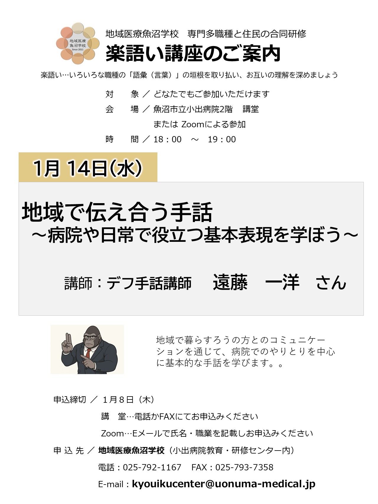 楽語い講座1月14日【地域で伝え合う手話~病院や日常で役立つ基本表現を学ぼう~】